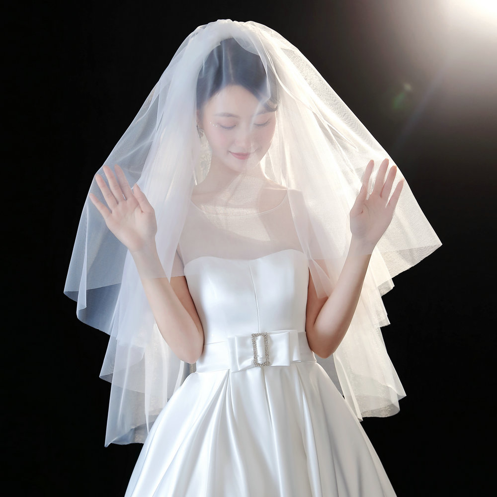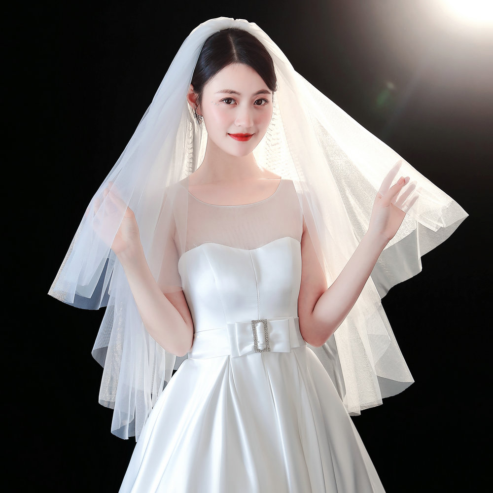 头纱新娘头饰超仙森系拍照道具纱白色头纱女结婚韩式 简约网红头纱