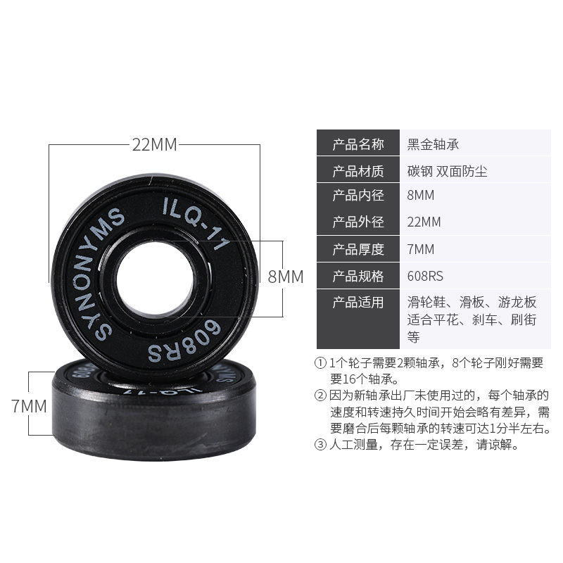 松克黑金轮滑轴承高速轴承溜冰鞋 11黑白陶瓷轴承 608滑板漂移ILQ