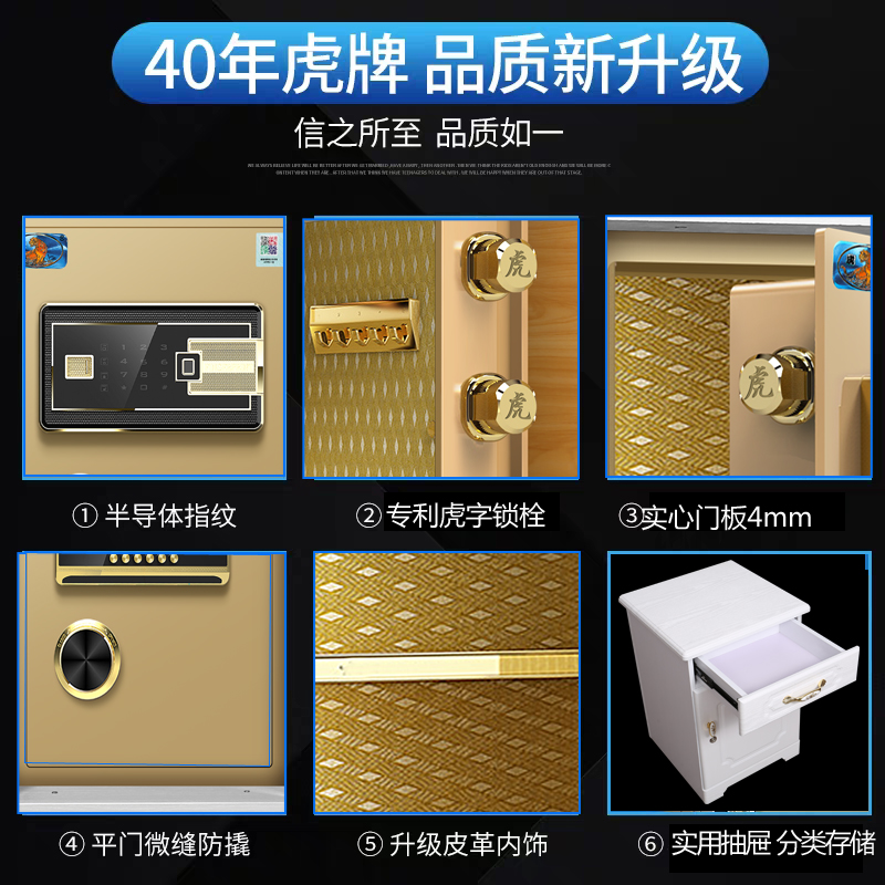 虎牌保险柜 升级 家用小型45 WiFi手机智能控制防盗办公夹万床头80保管箱2025新款 70CM指纹保险箱 新品
