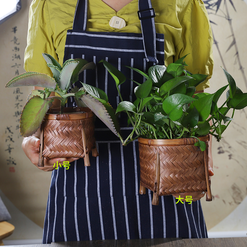 北欧ins客厅竹编植物花篮花盆装 家用 饰阳台藤编编织篮子落地式