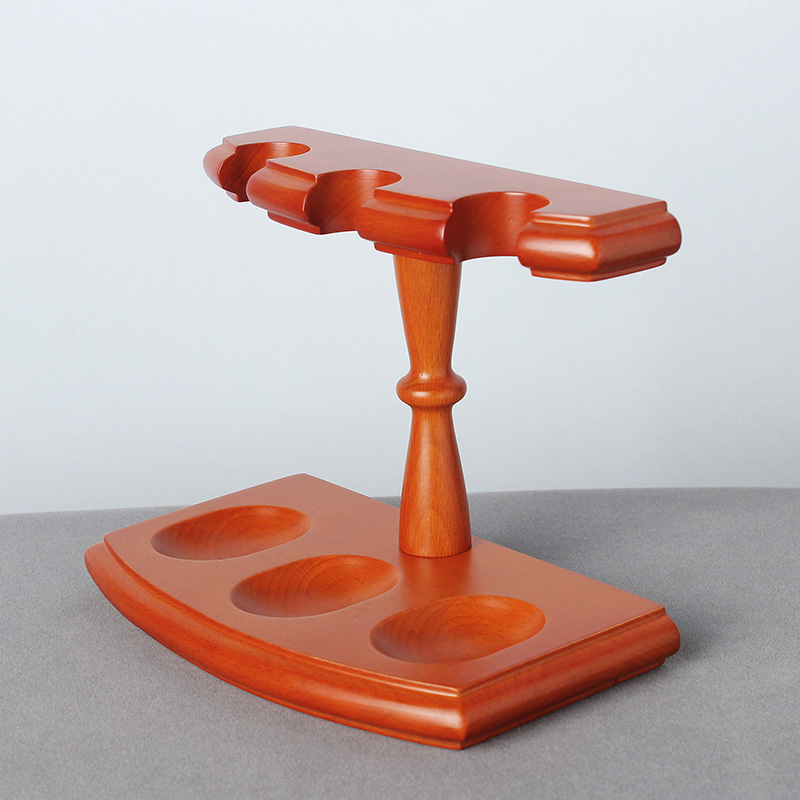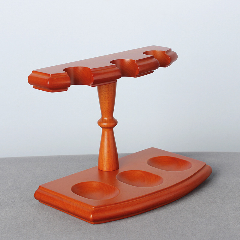 木香 烟斗展示架烟斗配件烟斗收藏架 榉木3位烟斗架桔黄色无标款