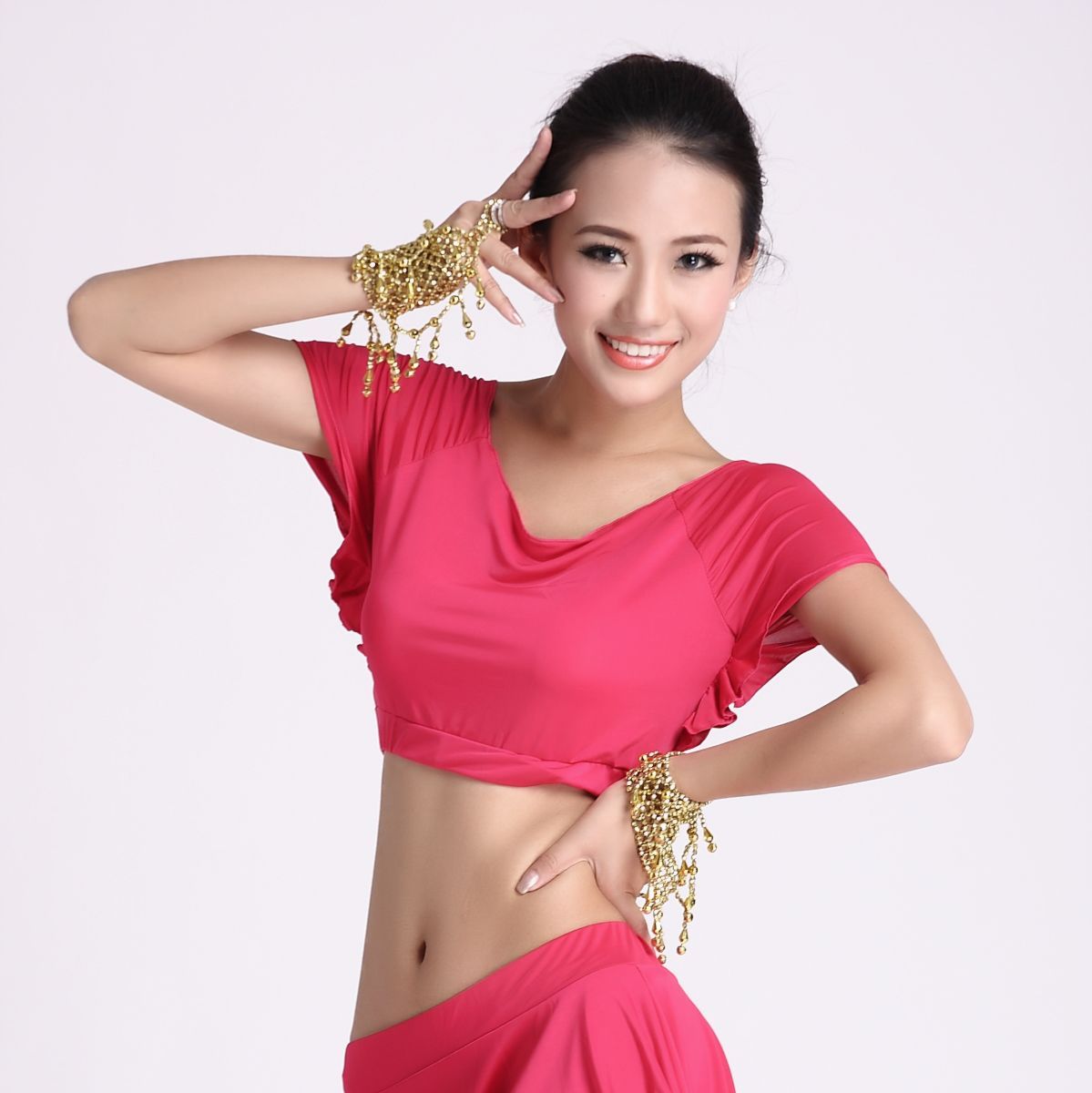 东方舞练习衣FM5062 上衣 飞魅肚皮舞练功服上衣 双层卷边短袖