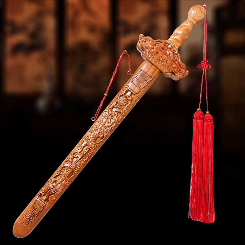 泰山福缘阁桃木剑七星剑双龙剑70cm家居装 饰工艺品