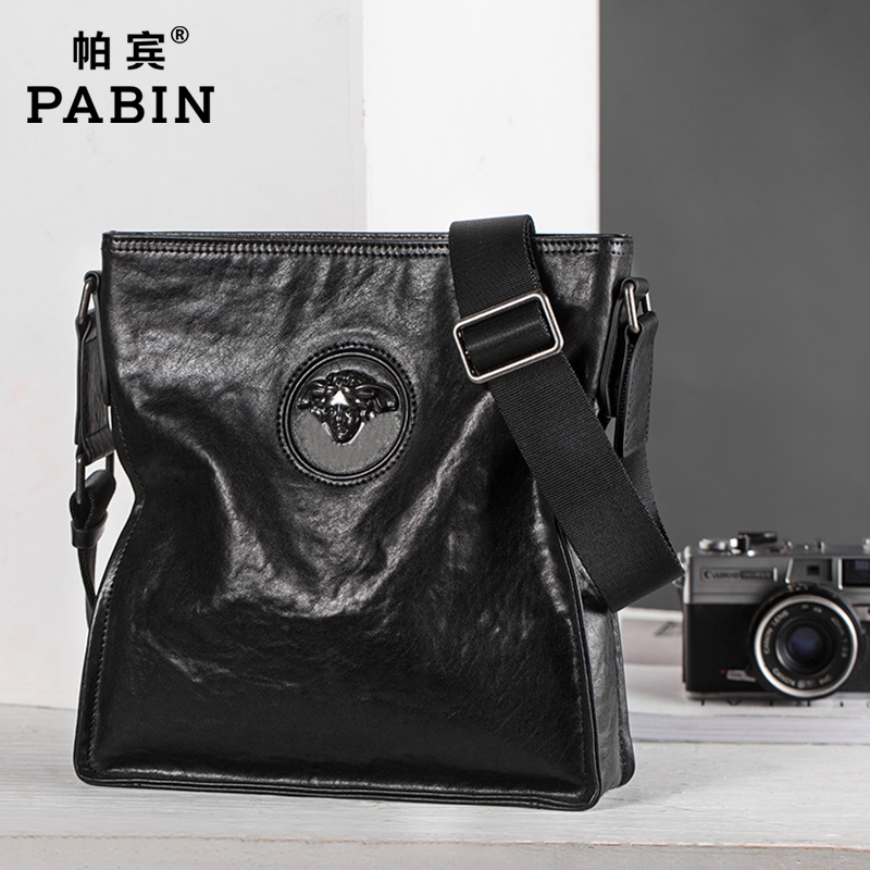 帕宾软皮男士 休闲商务真皮斜挎背包男包 包包牛皮单肩包男潮流韩版