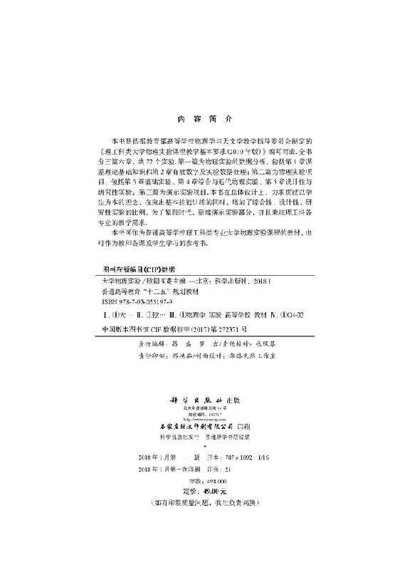 社 贾向东科学出版 大学物理实验 欧阳玉花