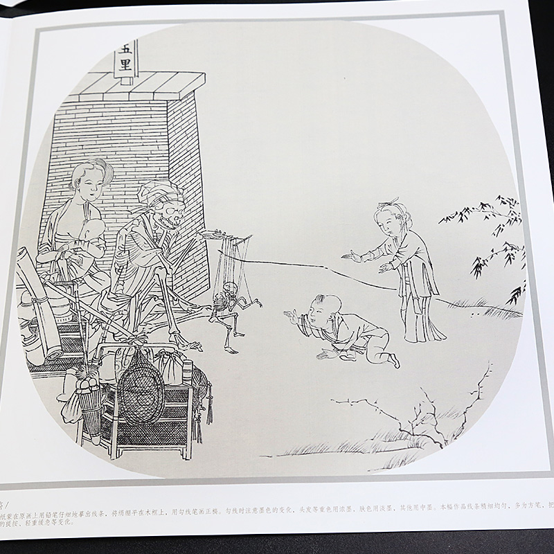 名画摹写宋代人物骷髅幻戏图原大高清白描样稿临摹示范步骤解析工笔画初学者入门临摹零基础手绘教程学生成人自学国画工笔画教程