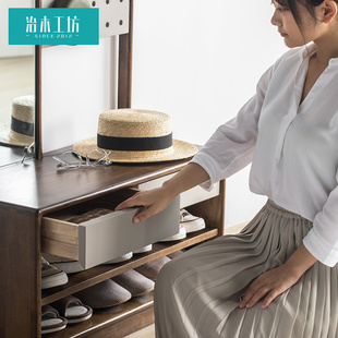 实木衣架落地衣帽架卧室家用挂衣架简易立式 榉木大学生宿舍挂包架