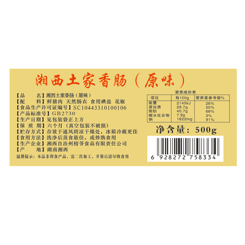 湘西土家香肠 500克农家手工制作工厂直销湖南老字号 原味