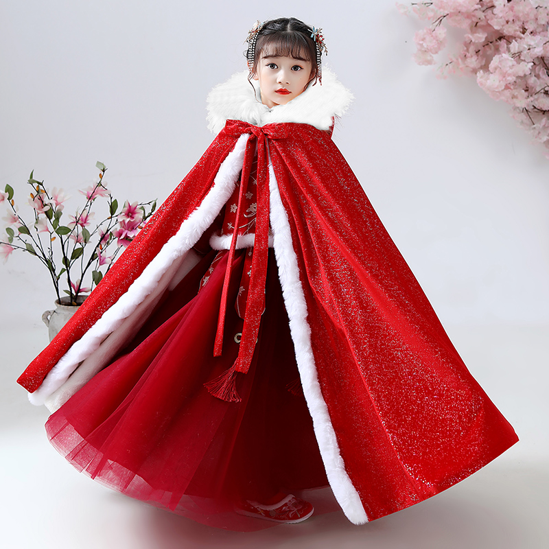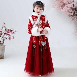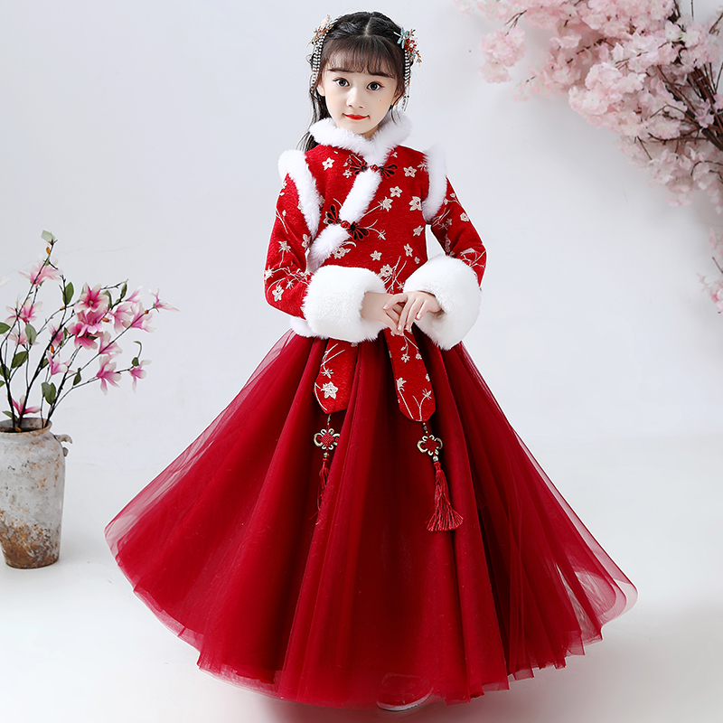 加厚汉服春秋装 小女孩长袖 中国风 宝宝礼服裙儿童唐装 女童旗袍中式