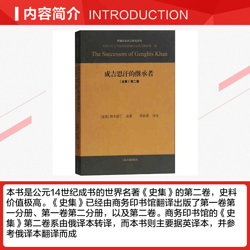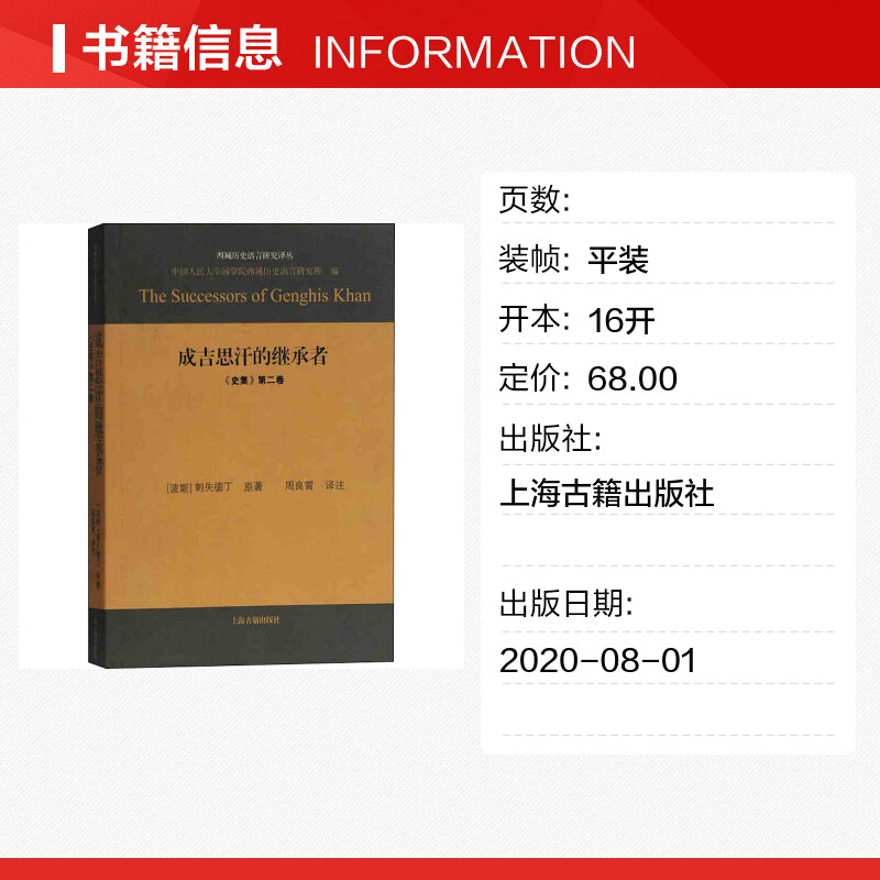 剌失德丁 新华文轩 第2卷 正版 上海古籍出版 继承者 新华书店旗舰店文轩官网 成吉思汗 社 史集 书籍小说畅销书 波斯