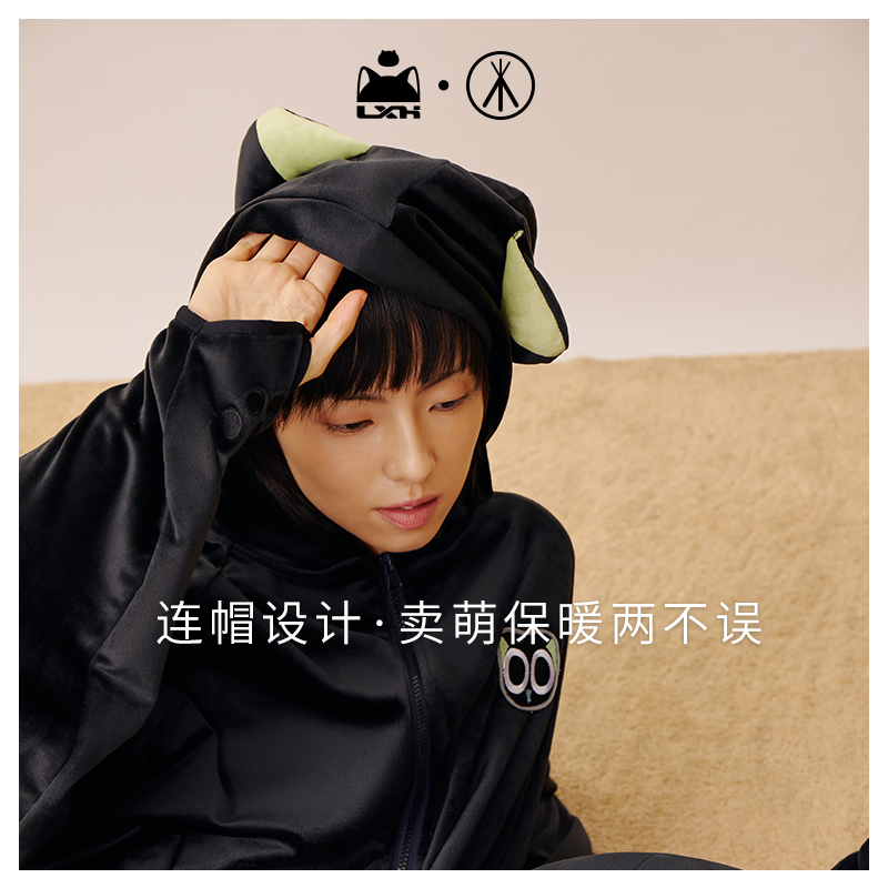 陪宠睡袍婴儿绒连体开襟可外穿 三枪家居服男女同款 罗小黑联名