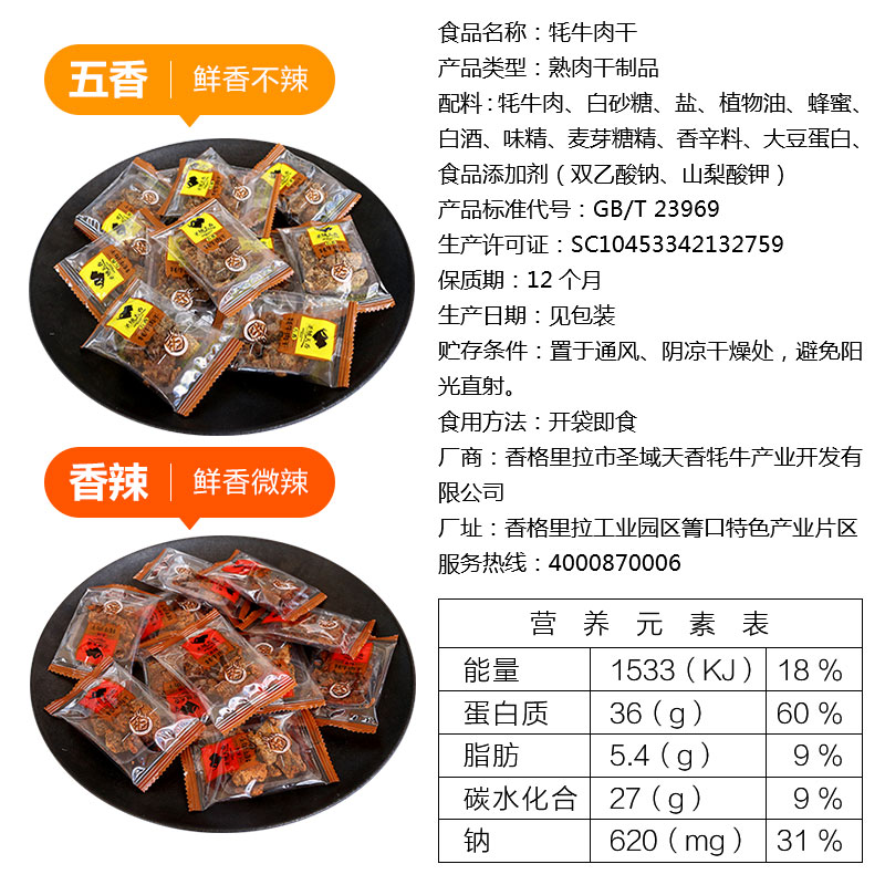 云南香格里拉圣域天香香辣五香不辣牛肉粒牦牛肉牛肉丁牛肉70g
