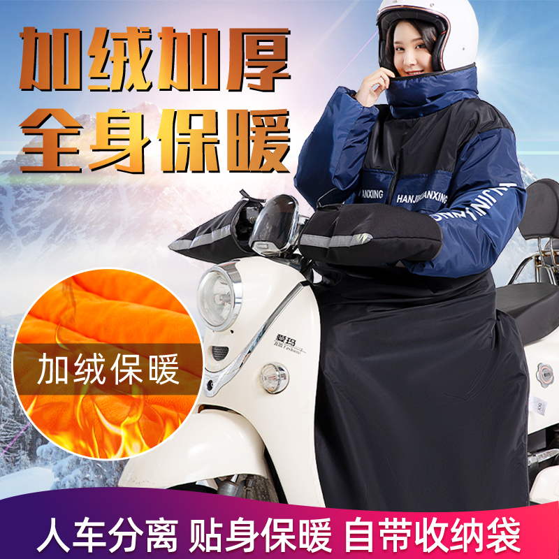 全身防水膜电动车挡风被冬季 加绒加厚电瓶摩托车冬天防寒防风罩