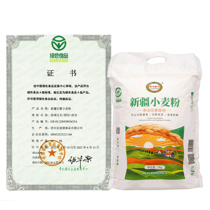新疆绿色食品奇台面粉西域宝贝石磨小麦粉麦芯粉5kg 1袋家用馒头