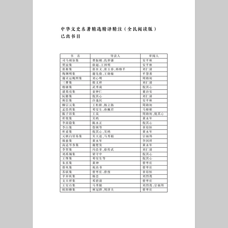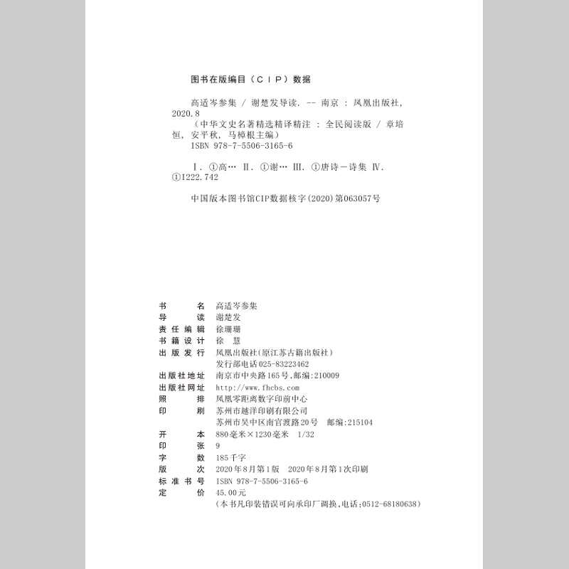 中华文史名著精选精译精注:全民阅读版 谢楚发导读 章培恒 马樟根主编 黄永年审阅 安平秋 高适岑参集