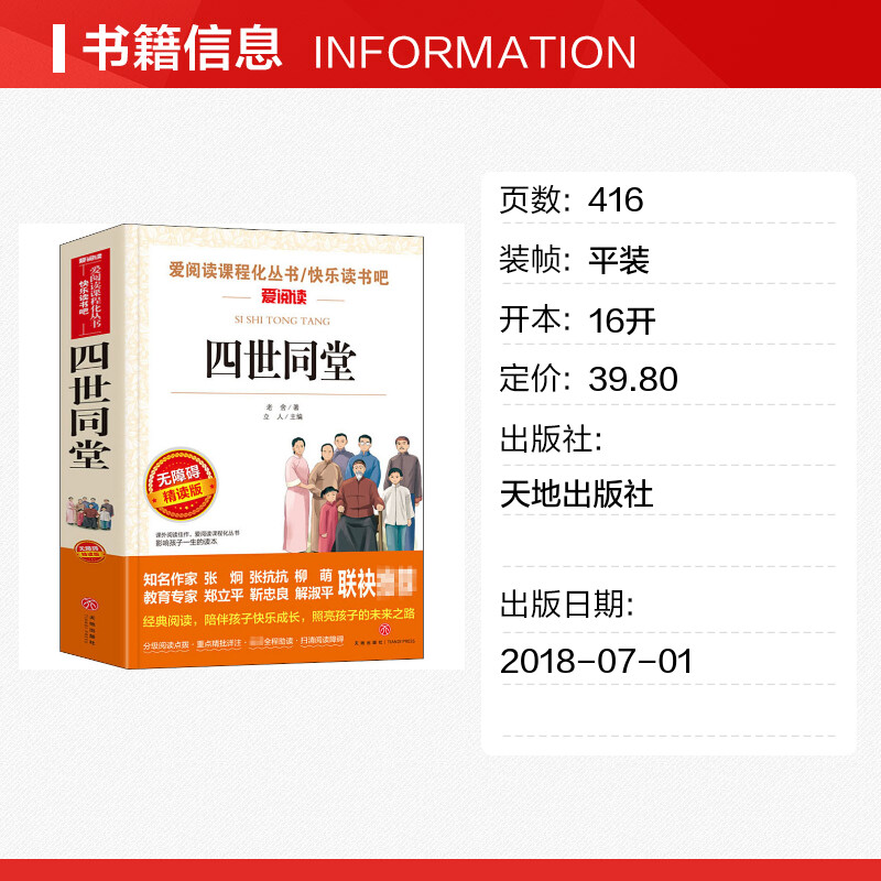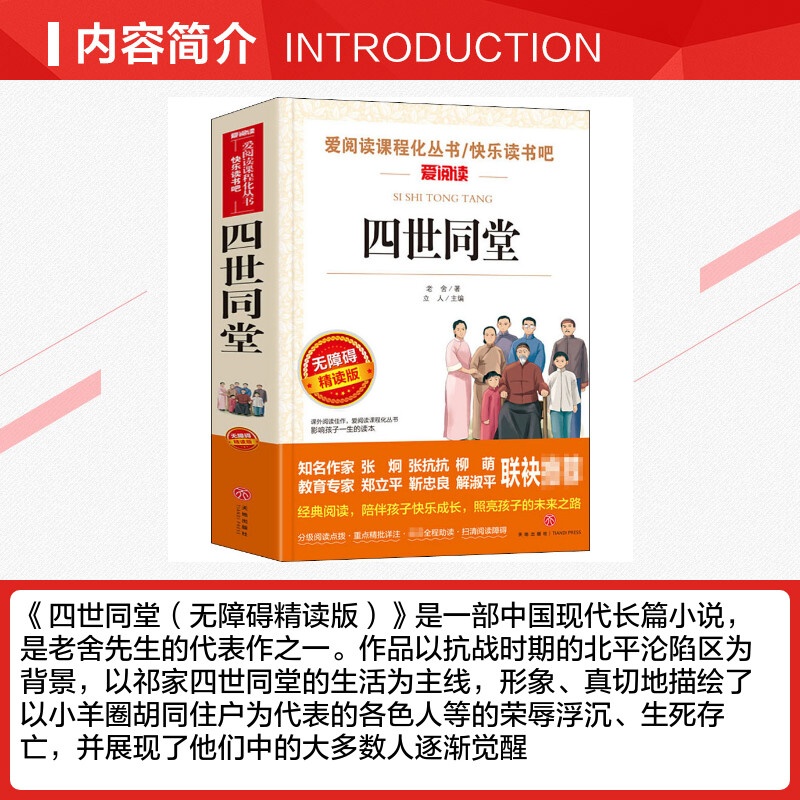 正版 爱阅读名著课程化丛书青少年初中小学生四五六七八九年级上下册必课外阅读物故事书籍快乐读书吧老师推荐 老舍 四世同堂