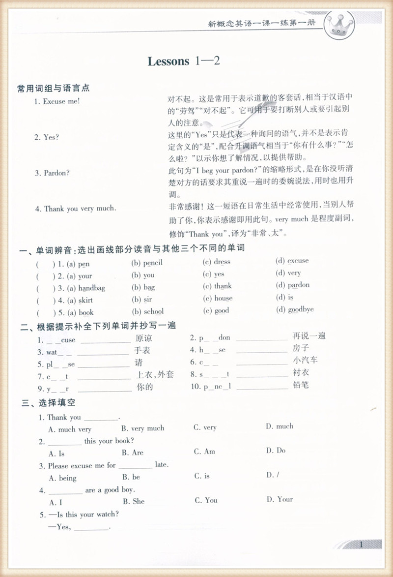 新概念英语一课一练1英语初阶活页可以撕下来新概念英语系列子金传媒配套新概念英语智慧版 含参考答案 教材1英语初阶教材课本适用