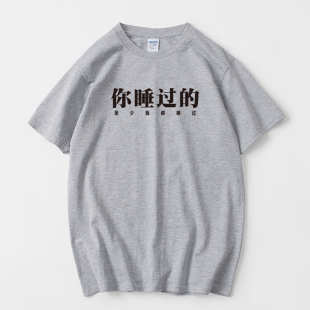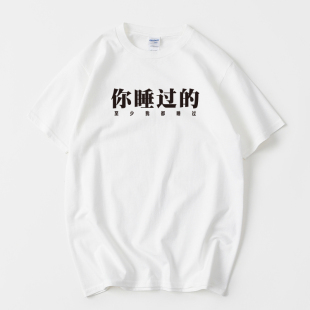男女情侣装 圆领夏季 上衣宽 至少我都睡过文字T恤短袖 文字你睡过