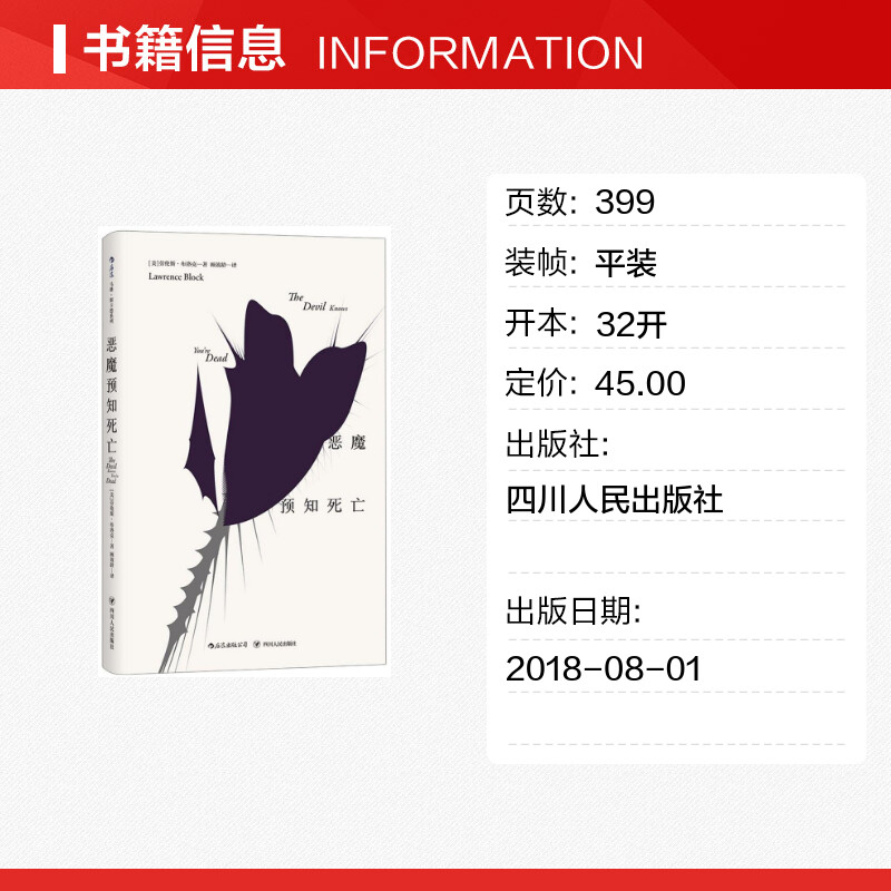 译 图书籍 劳伦斯·布洛克 新华书店正版 恐怖惊悚小说文学 侦探推理 著;顾效龄 Block Lawrence 美 恶魔预知死亡