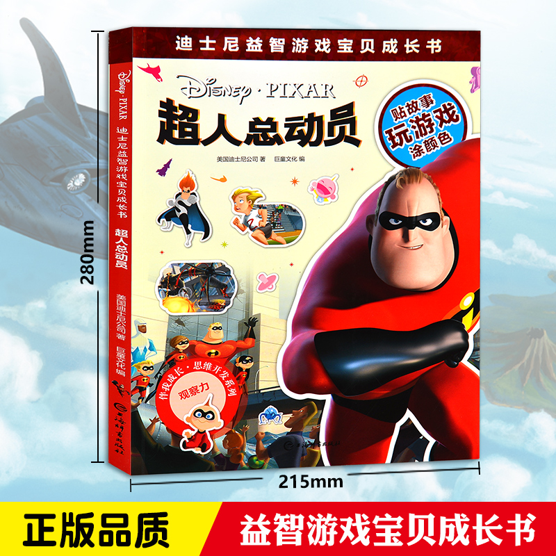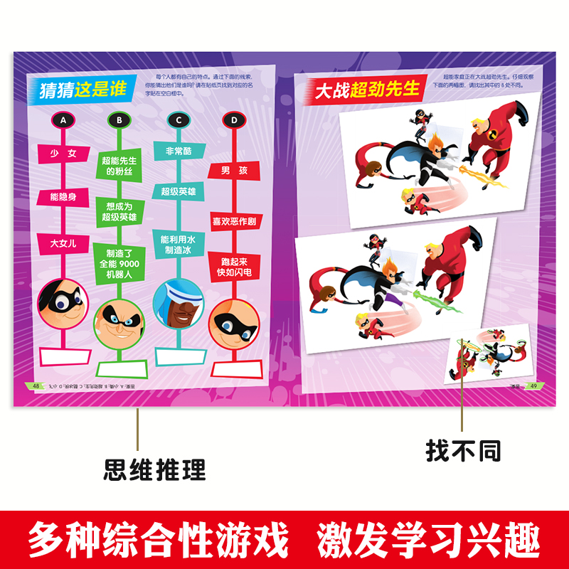 迪士尼益智游戏宝贝成长书超人总动员3 12岁儿童动脑动手益智游戏贴纸涂色彩色绘本提升宝宝思维能力找不同数数走迷宫益智早教益智