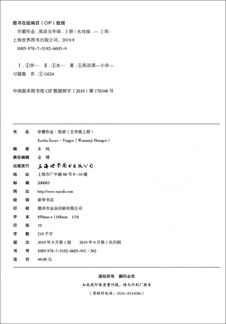 2024沪教新版 上海小学教材教辅教材同步配套课后练习英语课外练习题 学霸作业5年级上册英语五年级第一学期附赠试卷上海地区专版