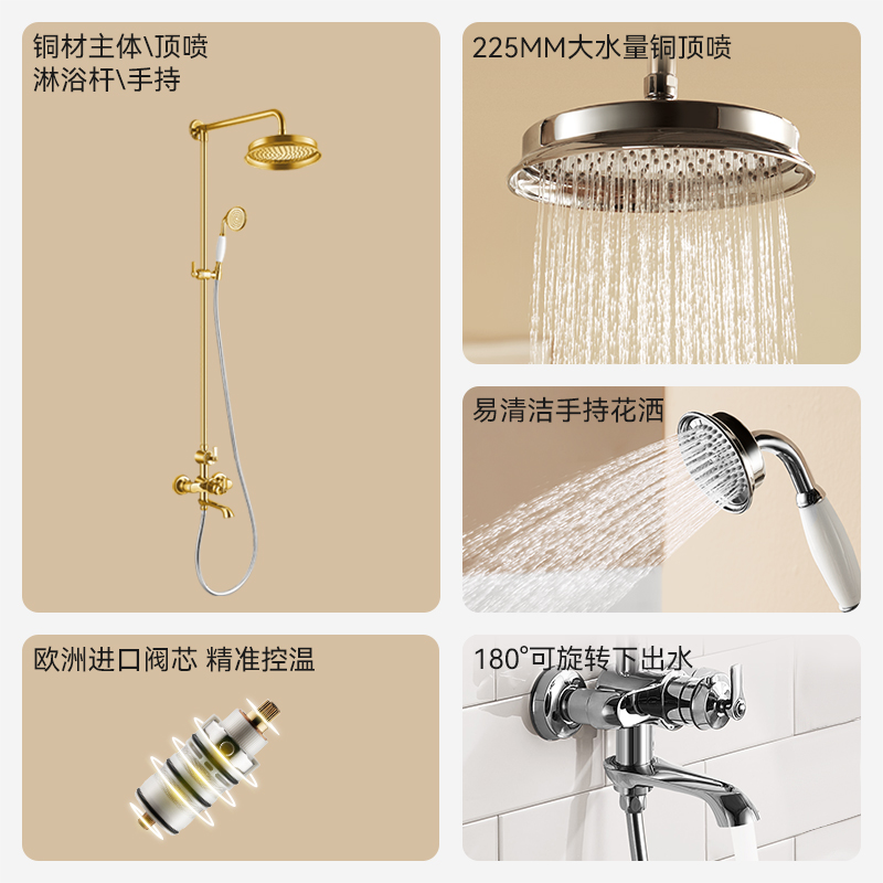 花洒套装 家用淋浴花洒浴室卫生间洗浴沐浴全铜恒温增压高级混水阀