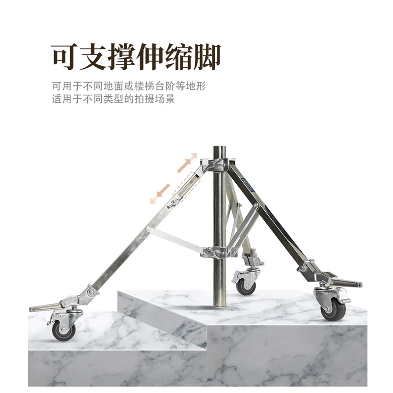 906大型影视摄影不锈钢两用重型轮滑脚架影室移动顶灯架