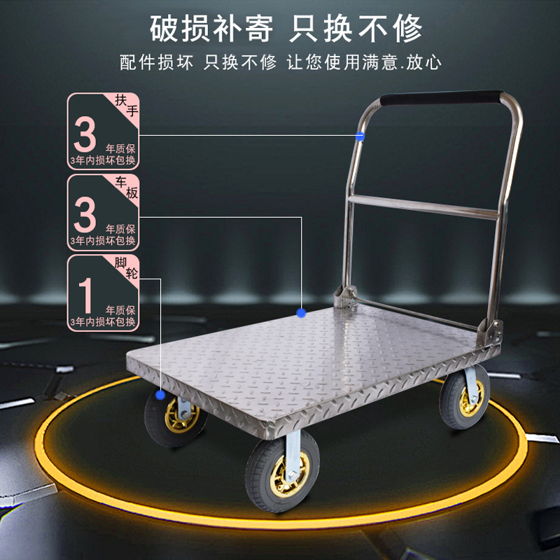 不锈钢平板手推车拉货车搬运推货车轻音折叠小推车拖车小拉车家用