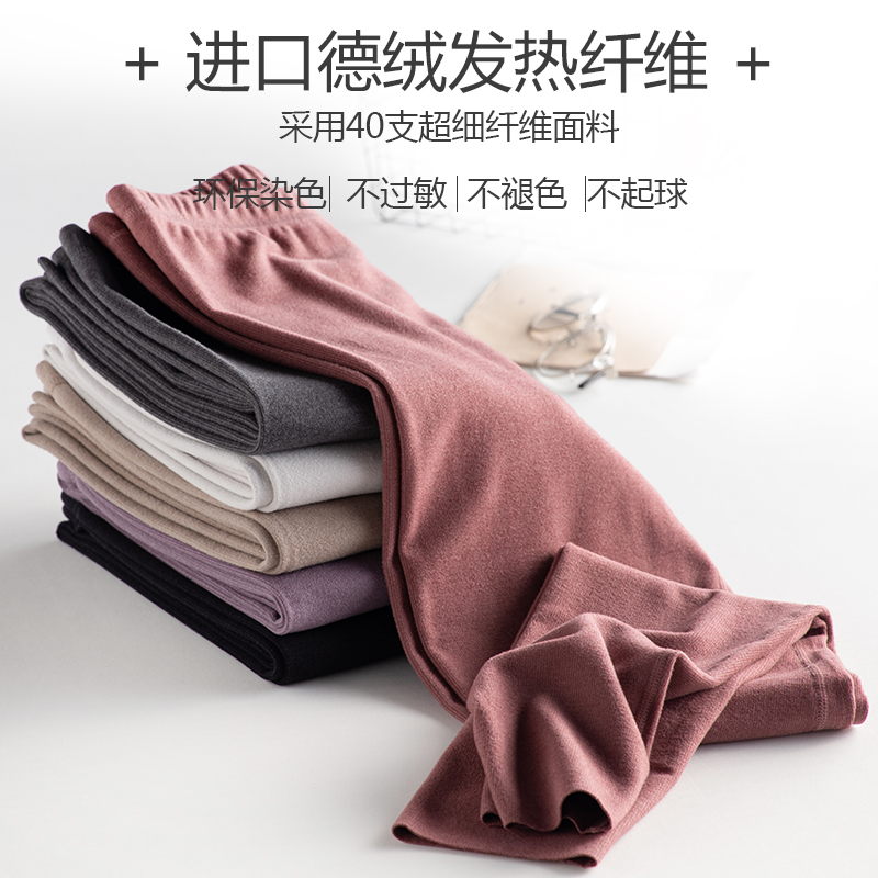 薄绒线裤 内穿发热热能打底裤 双面磨毛 加绒秋裤 德绒无痕女士保暖裤