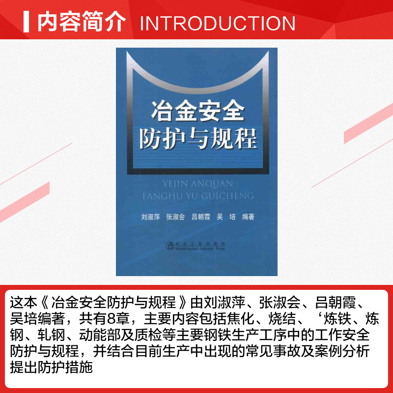 冶金工业专业科技 社 张淑会 冶金工业出版 图书籍 新华书店正版 著作 吴培 吕朝霞 刘淑萍 冶金安全防护与规程