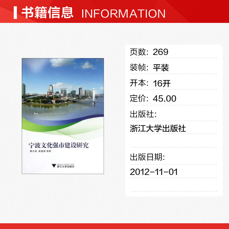 著 社会科学总论经管 浙江大学出版 黄志明 社 图书籍 姜建蓉 新华书店正版 宁波文化强市建设研究 励志
