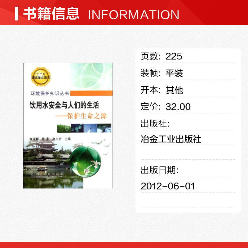 环境科学专业科技 社 保护生命之源 冶金工业出版 图书籍 新华书店正版 著作 编 张瑞娜 生活 饮用水安全与人们