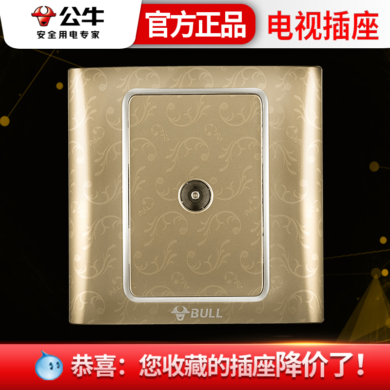 公牛开关插座电视插座墙壁86型暗装 香槟金一位有线闭路插座面板