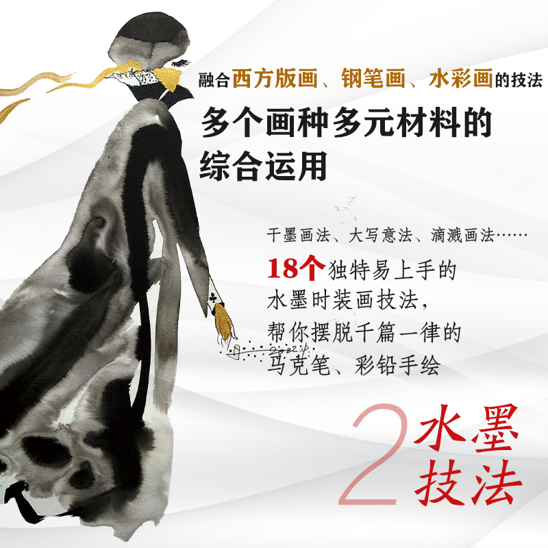 时尚 裁剪与制作 中国风创意水墨时装 图解零基础 古风风格 设计 2册 旗袍汉服唐装 中式 画 技巧 手绘表现技法教程书籍 服装 时装 设计师