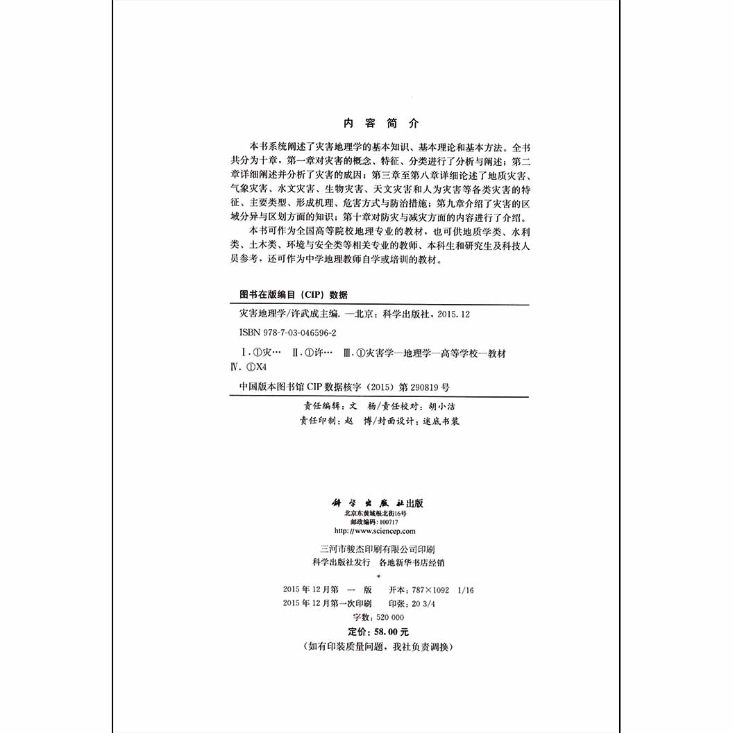 地理学 环境科学 资环 测绘 社 灾害地理学 科学出版 许武成