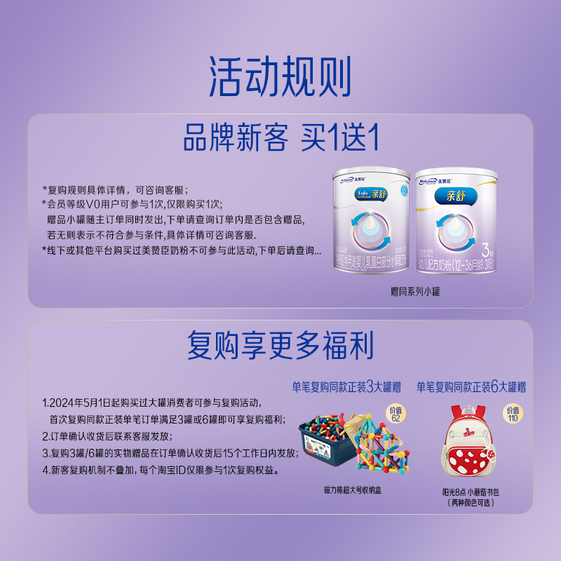 12月婴幼儿牛奶粉850g 美赞臣亲舒1段0 370g 品牌新客买1送1