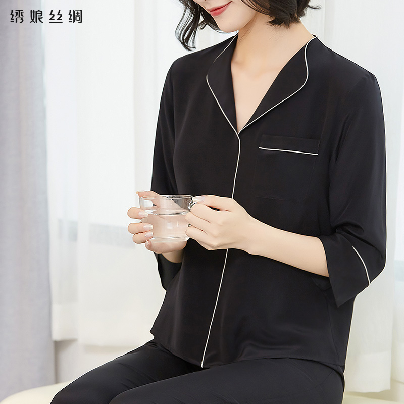 绣娘丝绸真丝睡衣女礼盒装 100%桑蚕丝纯色休闲高级感家居服 薄款