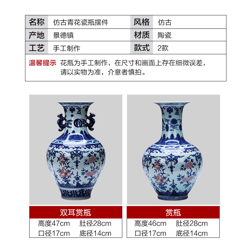 景德镇陶瓷器青花瓷花瓶插花摆件复古中式 饰品工艺品 客厅家居装