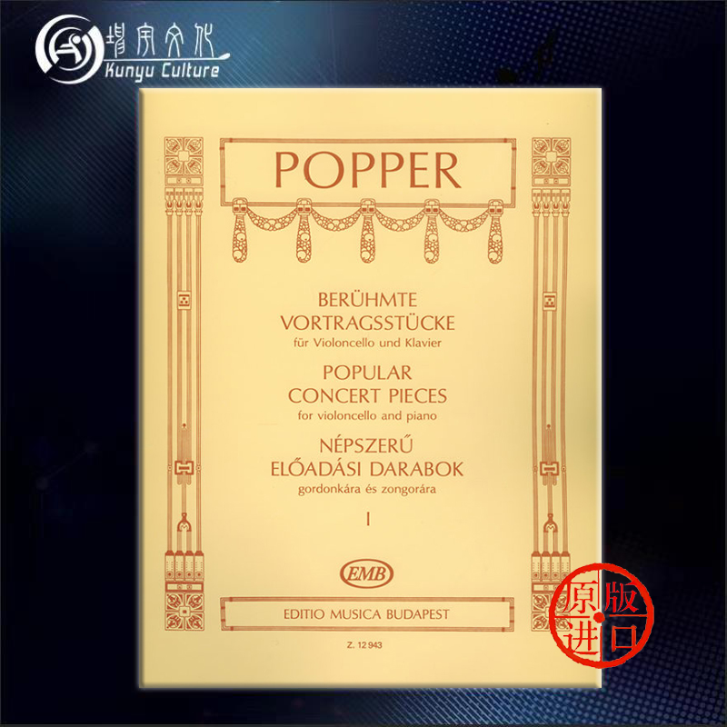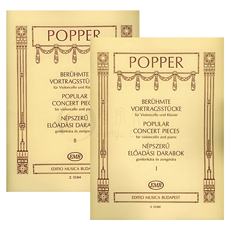 Pieces 流行音乐会作品 Popular 波帕尔 and 大提琴和钢琴 Violoncello 全套共一至二卷 Piano 布达佩斯乐谱书 Concert