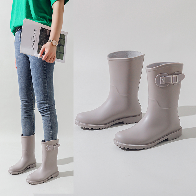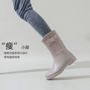 女款 防滑雨鞋 户外成人雨靴胶鞋 防水时尚 雨牧经典 粉色水鞋 搭扣款