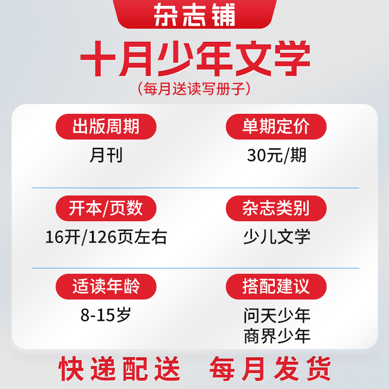 2026年1月起订 1年共12期 青少年文学文摘 送好礼 课外阅读 15岁青少年中小学生课外阅读作文素材 十月少年文学杂志 杂志铺
