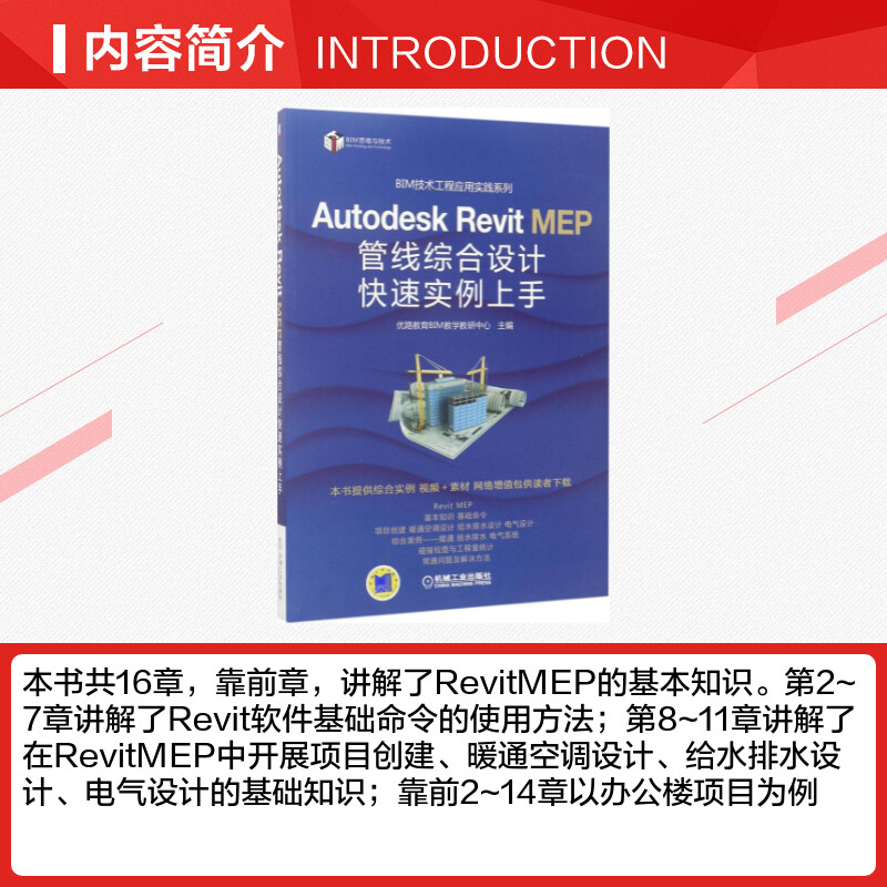 优路教育BIM教学教研中心 主编 机械工业出版 Revit 社 新华书店旗舰店文轩官网 MEP管线综合设计快速实例上手 书籍 Autodesk 正版