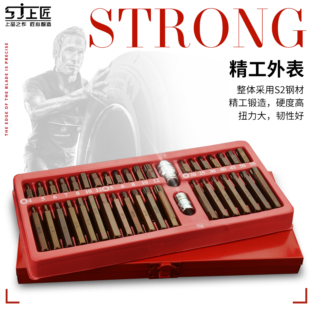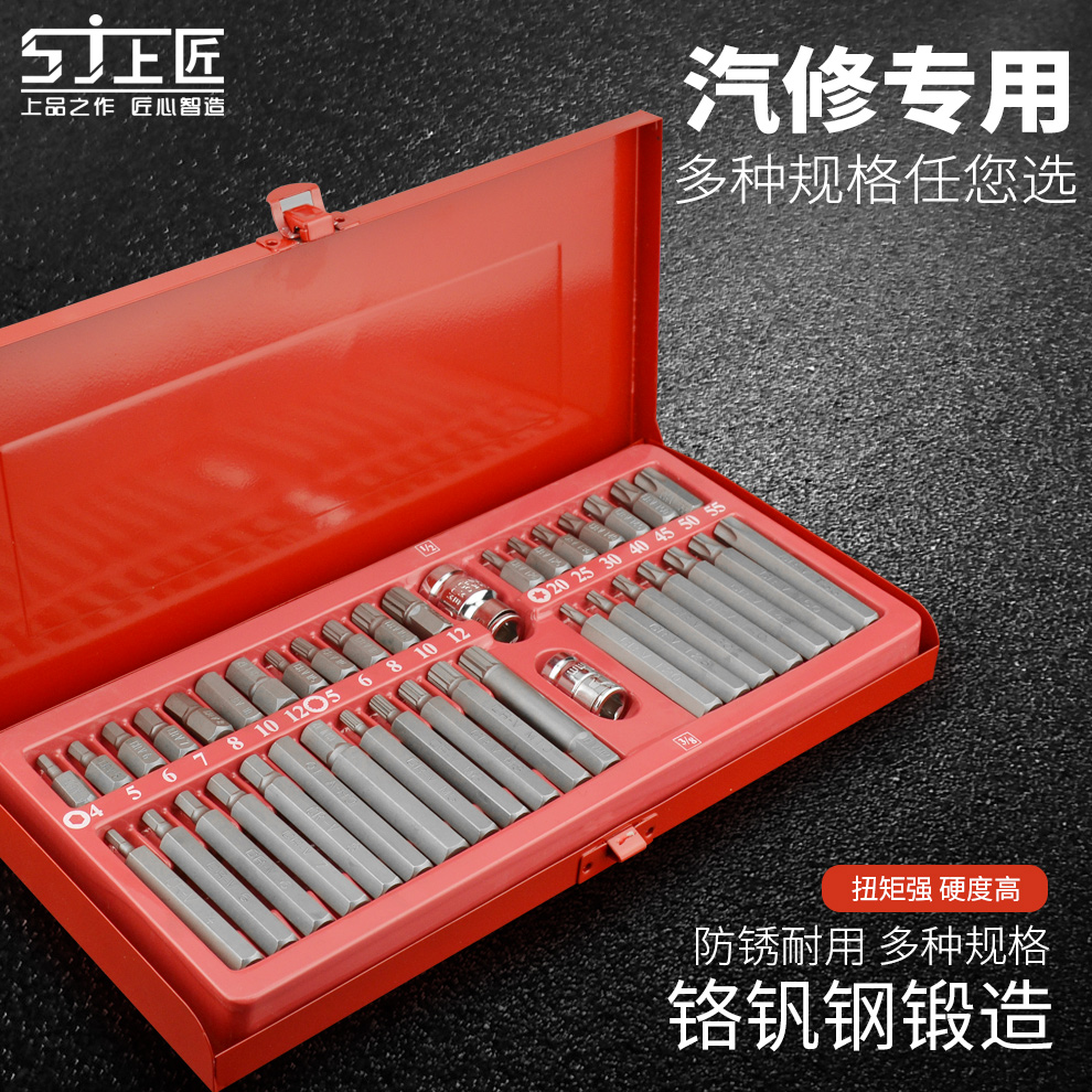 上匠40件旋具套筒内六角内六花 S2汽修螺丝批 铬钒钢12角花星批头