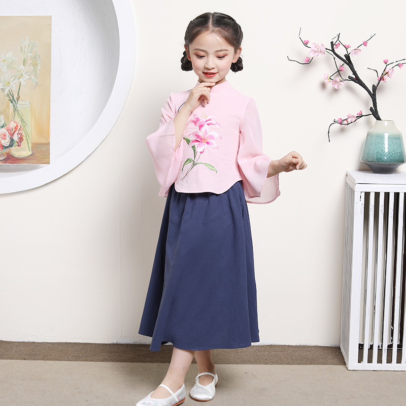 元 旦儿童大合唱演出服男女童马面裙运动会表演服诗歌朗诵国风汉服