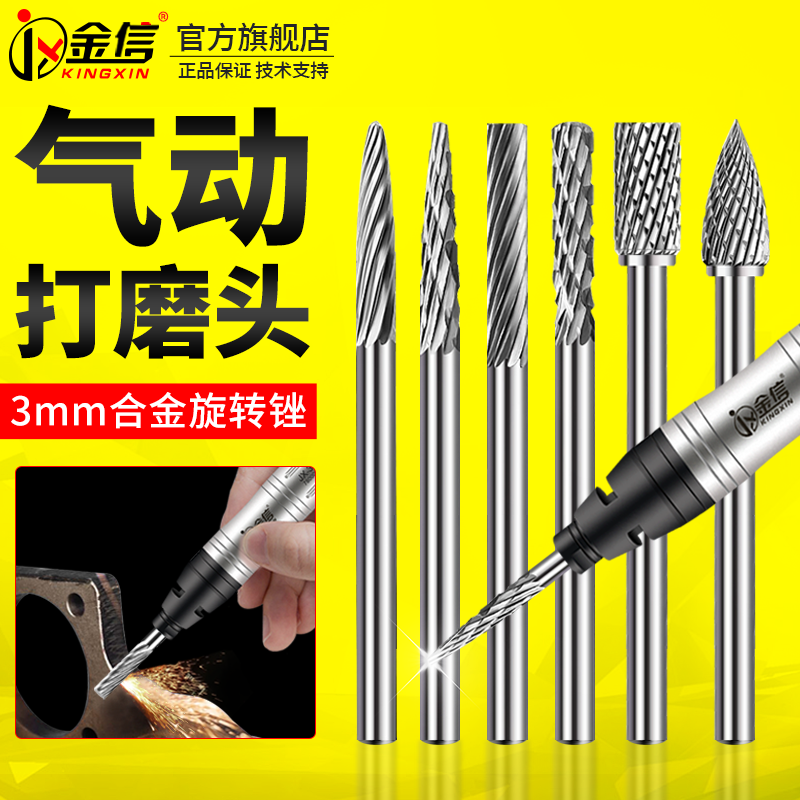 金信硬质合金旋转锉刀钨钢打磨头3mm气动铣刀风磨笔小电磨机乌钢