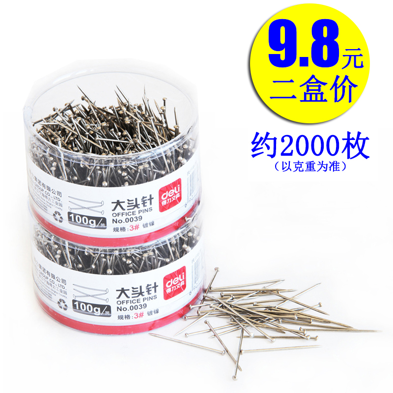 包邮 标记定位针盒装 批发得力大头针 立裁钉办公用手工扎针 固定针小号珍珠针定位针直别金属服装 2000枚