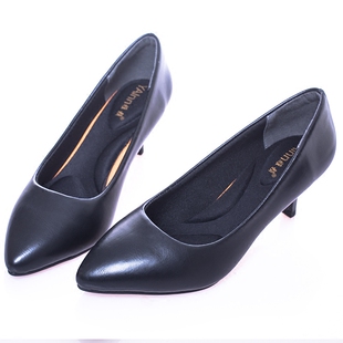 鞋 职业空姐鞋 工作鞋 舒适软皮鞋 高跟鞋 工装 女黑色正装 细跟春夏单鞋