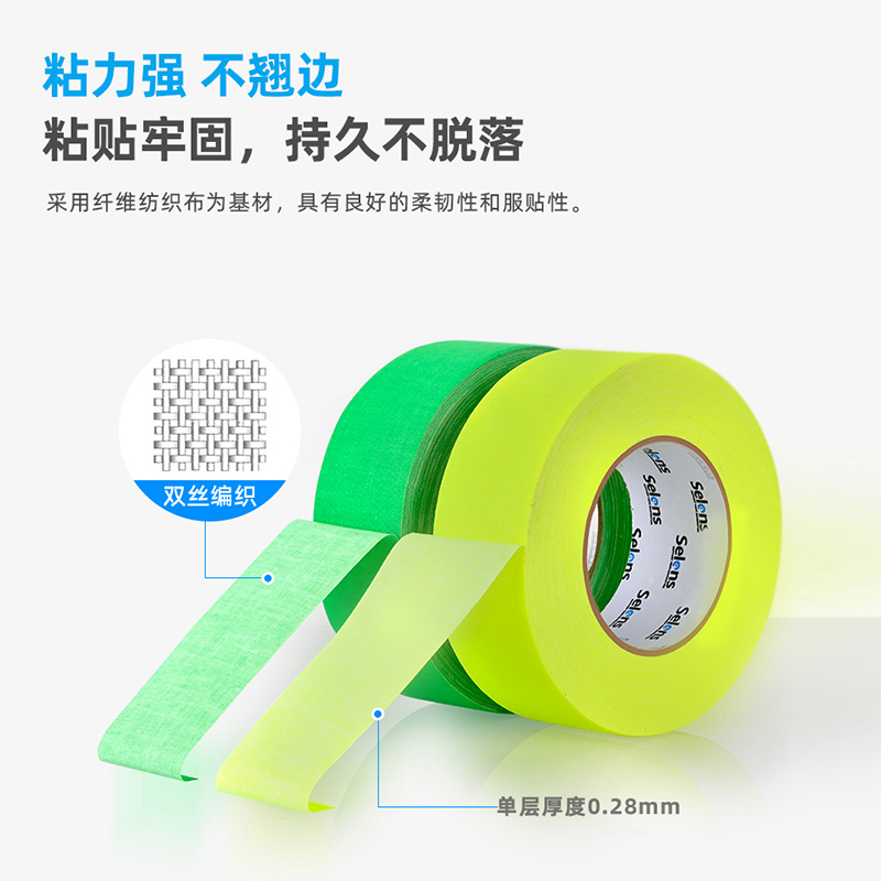 影视布基胶带大力胶摄影棚舞台拍照道具DIY装 饰易撕高粘防水彩色荧光哑光不反光强力接缝胶展会地毯标记胶布