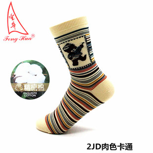 丰华袜子女士春夏高筒休闲运动卡通潮袜青年学生吸汗条纹薄款 棉袜