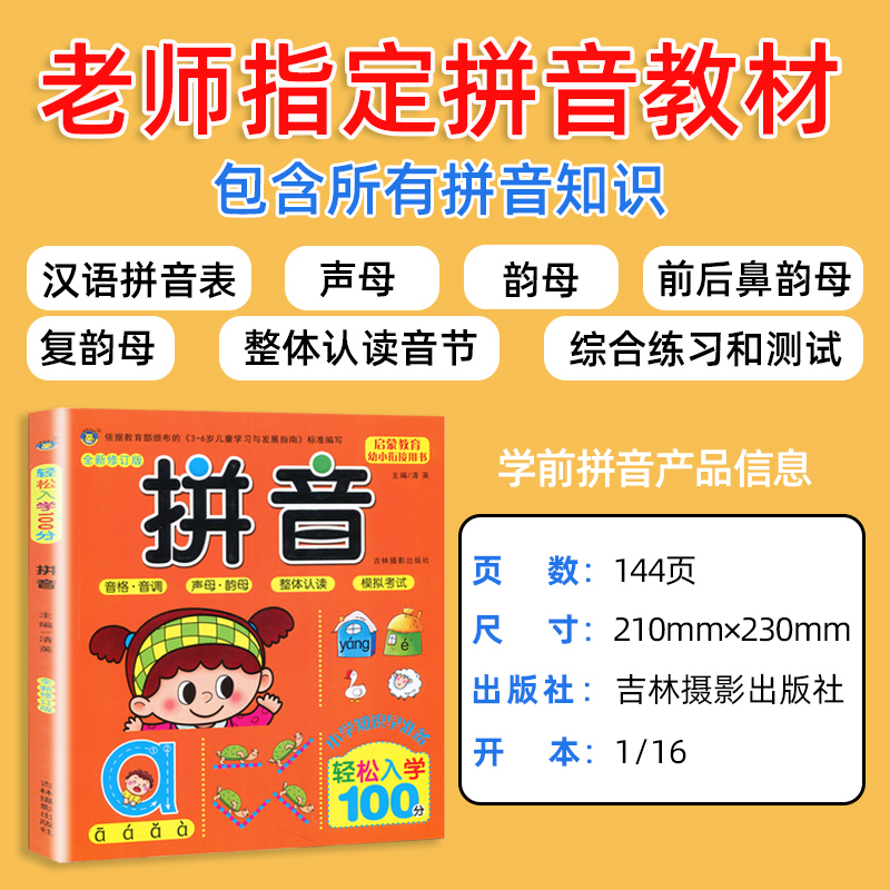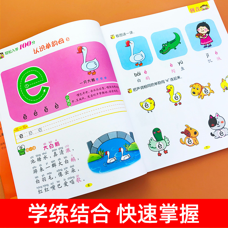 拼音学习教材 学声母韵母汉语儿童拼音幼儿园书全套大班一年级学习神器幼儿基础早教启蒙练写册幼小衔接训练书籍 学前拼音拼读训练